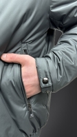 Капюшон відстібається та регулюється за допомогою затяжок, дозволяючи легко адаптувати модель до погодних умов. Рукави на еластичній резинці додатково фіксуються кнопкою, що допомагає краще зберігати тепло. Низ куртки також виконаний на резинці для зручної посадки та захисту від холодного повітря.
