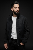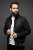 Класична чоловіча чорна куртка з комбінованої тканини