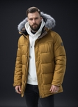 Подовжена чоловіча зимова куртка з натуральним хутром чорнобурки жовта(2079)